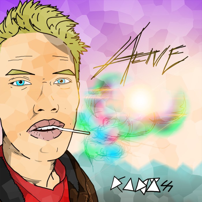 Artwork was greatly inspired by current trends throughout the musical industry, generally the hip-hop region. Using Photoshop, a selfie was retraced free-hand with a typical computer mouse to trace out the outlines of objects, some wrinkles, and other miscellaneous objects. The drawing was spent nearly three hours alone, and that excludes colouring, retexturing, and embossing. A wide variety of colour pallets were considered for use in the artwork, and it turned out to be the “I’m a white male with 100% privileges.” Please note that the receding phrase was used merely as a satirical matter and should not be taken seriously. Readers who are mildly offended should please exit out of this page, turn off their device, walk outside, and to avoid any public schools and buildings.